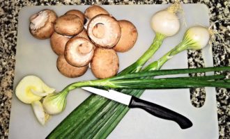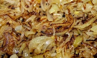 Мелко нарезанные лук и чеснок обжарить до золотистого цвета